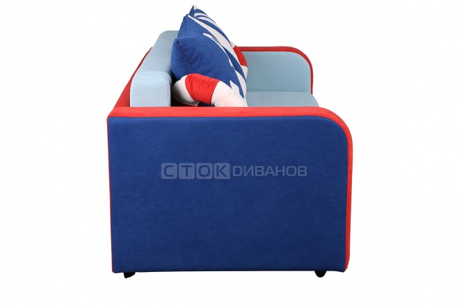 Детский диван Капитан – компактный диван с просторным спальным местом 120 см по ширине. В основе дивана - практичный и удобный механизм Еврокнижка. Наполнение спального места - пенополиуретан (ППУ). Ящик для хранения белья. Мягкие безопасные подлокотники.