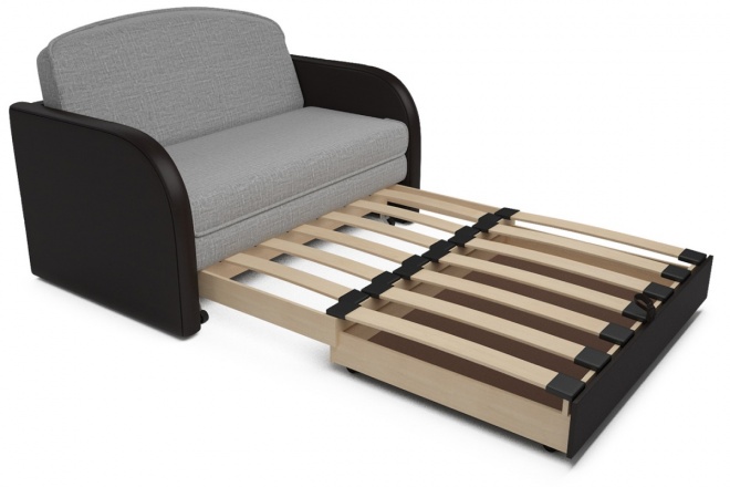 Диван Малышкомпактный диван-кровать со спальным местом. Простой и надежный механизм - Выкатной вперед. Ящик для белья. Матрац на основе ППУ. Основание спального места - латы. Узкие подлокотники с плавными формами