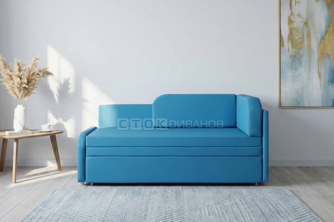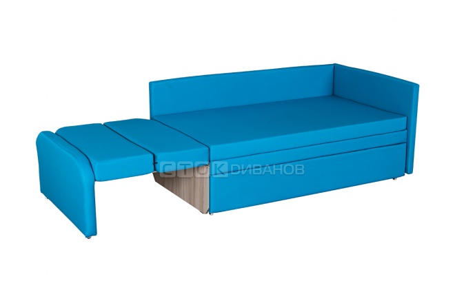 Некоторые модели имеют сдвижную конструкцию - основание дивана сдвигается в бок, подлокотник опускается в горизонтальное положение образуя спальное место. Идеально подходит для детской, кухни, прихожей.