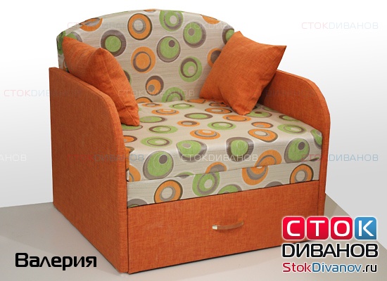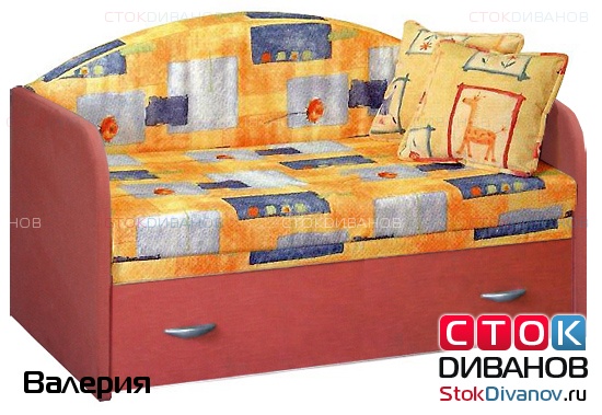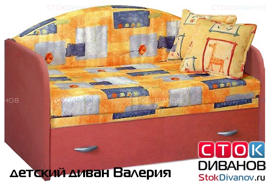 Детский диван Валериянебольшой стильный диванчик для детской. Диван имеет скруглённые подлокотники, отвечающие требованиям безопасности. Механизм трансформации позволяет разложить диван в двух положениях. Для совсем маленького ребёнка потребуется всего одно положение. В комплектации ящик для белья и декоративные подушки.