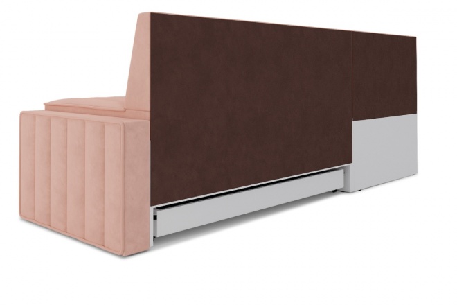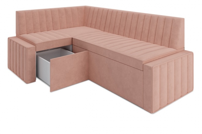 Кухонный уголок Барселонакомпактный и комфортный кухонный угловой диван со спальным местом. Два ящика для белья из ЛДСП: выдвижной в угловой части и бельевой под спальным местом. Простой и надежный механизм Дельфин. ППУ матрац