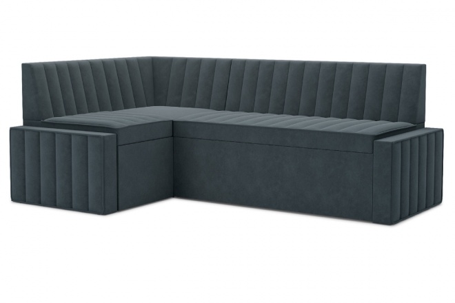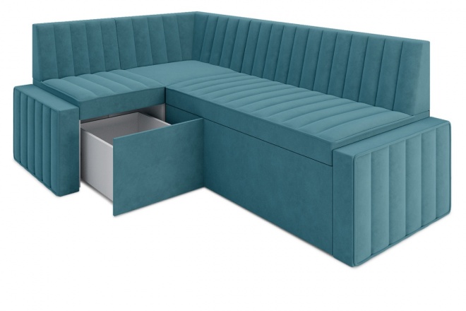 Кухонный уголок Барселонакомпактный и комфортный кухонный угловой диван со спальным местом. Два ящика для белья из ЛДСП: выдвижной в угловой части и бельевой под спальным местом. Простой и надежный механизм Дельфин. ППУ матрац