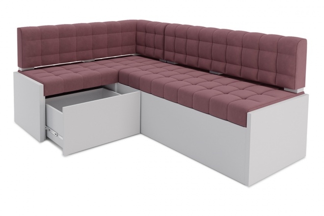 Кухонный уголок Милтонкрасивый и уютный кухонный угловой диван со спальным местом. Ящик для белья из ЛДСП расположен в угловой части. Простой и надежный механизм Дельфин. ППУ матрац. Утяжки и прострочки на поверхности сиденья и спинки.