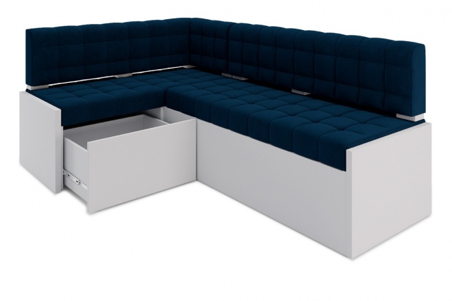 Кухонный уголок Милтонкрасивый и уютный кухонный угловой диван со спальным местом. Ящик для белья из ЛДСП расположен в угловой части. Простой и надежный механизм Дельфин. ППУ матрац. Утяжки и прострочки на поверхности сиденья и спинки.