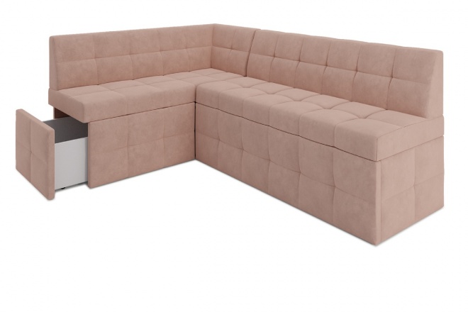 Кухонный уголок Оливеркухонный угловой диван лаконичной формы со спальным местом. Ящик для белья расположен в угловой части. Простой и надежный механизм Дельфин. ППУ матрац. Утяжки и прострочки на поверхности сиденья и спинки.