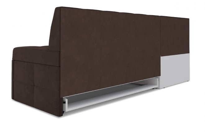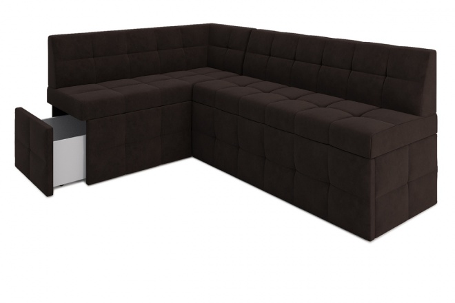 Кухонный уголок Оливеркухонный угловой диван лаконичной формы со спальным местом. Ящик для белья расположен в угловой части. Простой и надежный механизм Дельфин. ППУ матрац. Утяжки и прострочки на поверхности сиденья и спинки.