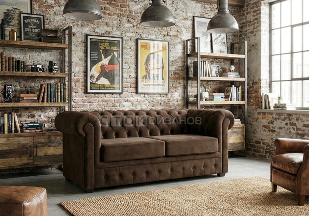 Диван Честер-2 – шикарный диван выполненный в винтажном стиле. Подходит для интерьеров HoReCa - диван Честер идеально впишется в интерьер загородного дома или офисного пространства, а также в интерьер кафе или гостиниц.
