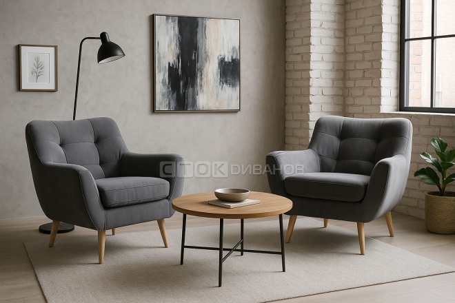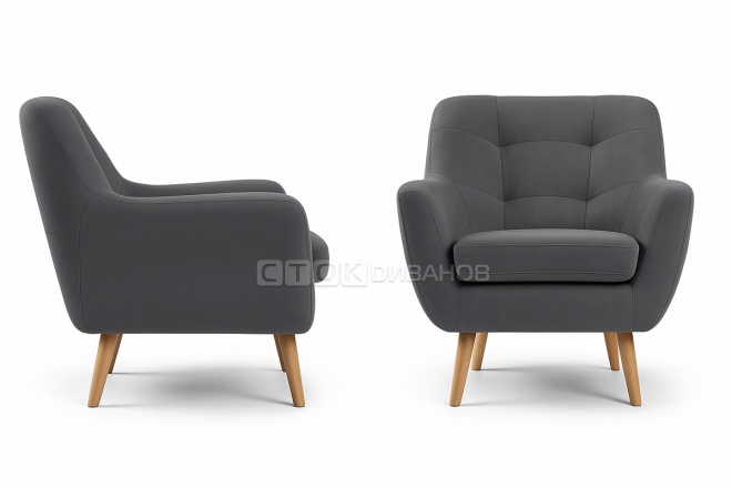 Кресло Комфортуютное небольшое кресло с подлокотниками, в скандинавском стиле на высоких ножках.