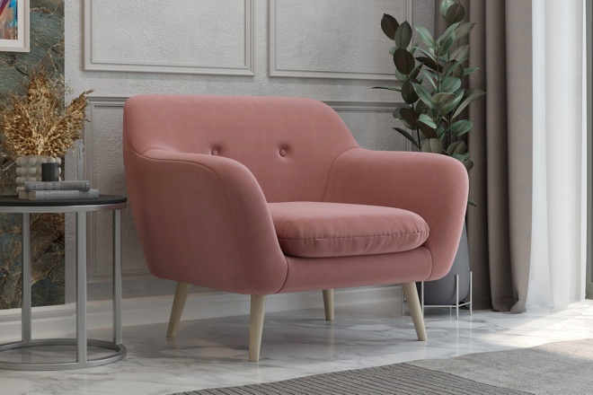 Кресло Теддикомпактное кресло в скандинавском стиле на высоких ножках.