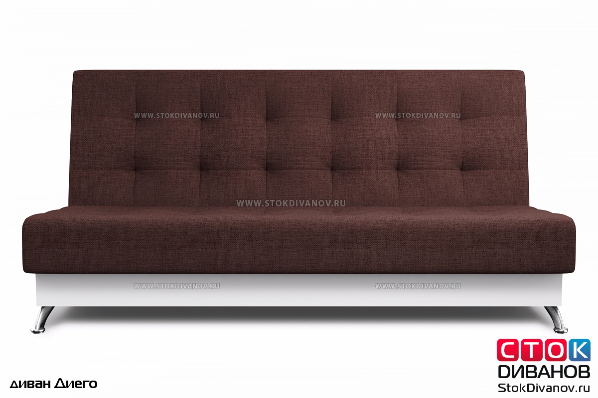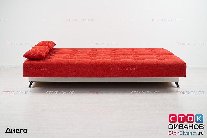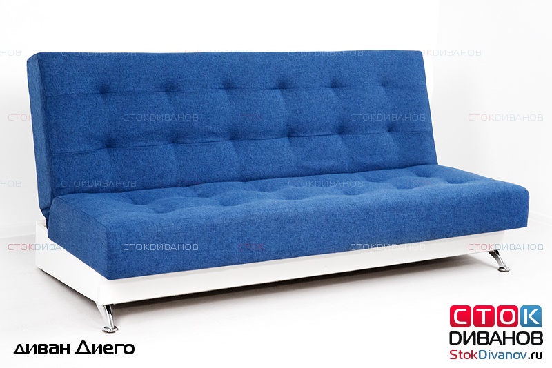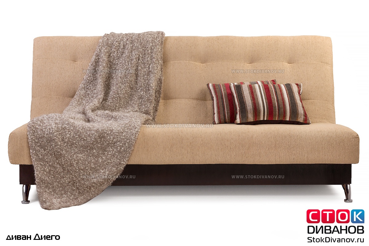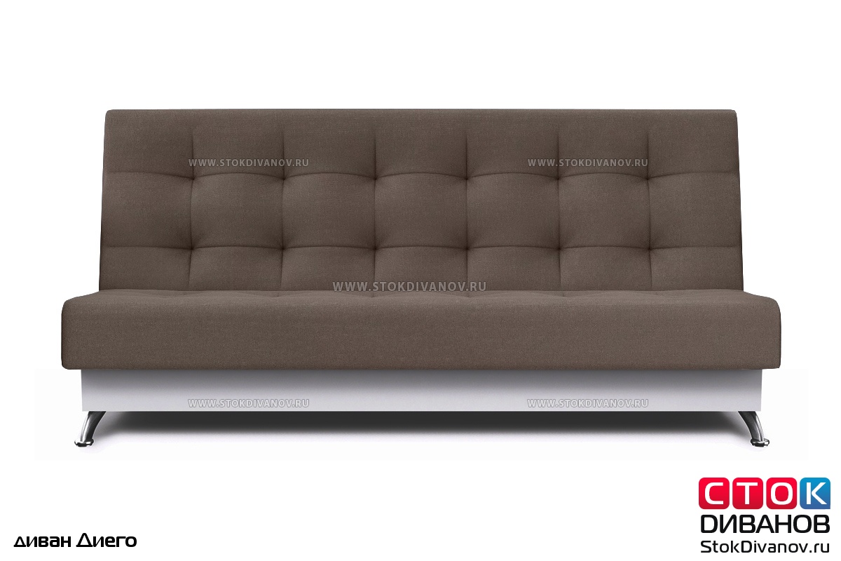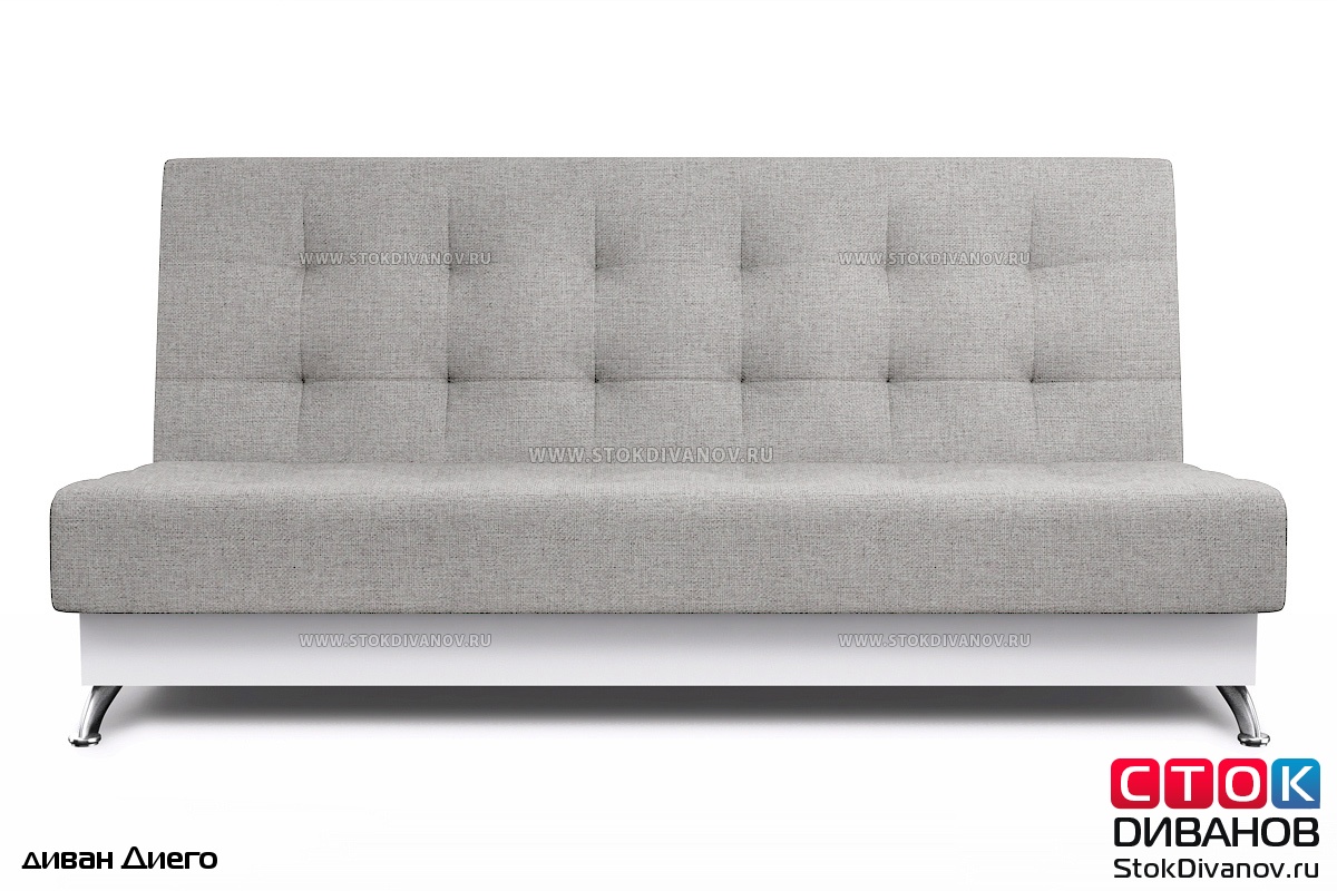 Диван Диегокомпактный диван без подлокотников. Раскладывается в кровать при помощи надежного механизма Книжка. Высокие ножки позволяют делать уборку под диваном. Ящик для белья под спальным местом - выполняется из ЛДСП. Утяжки по всей поверхности спального места. В основе дивана используется пружинный блок