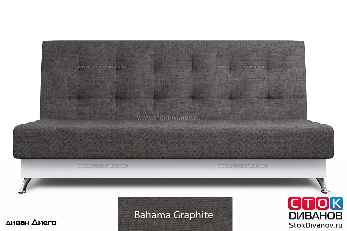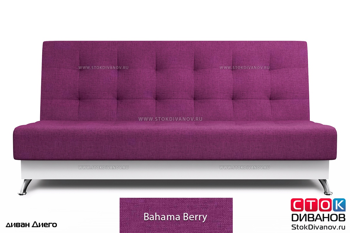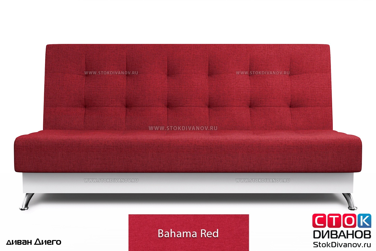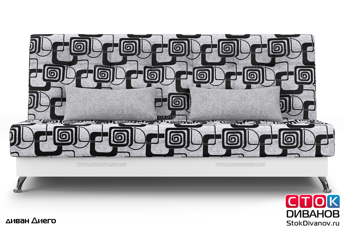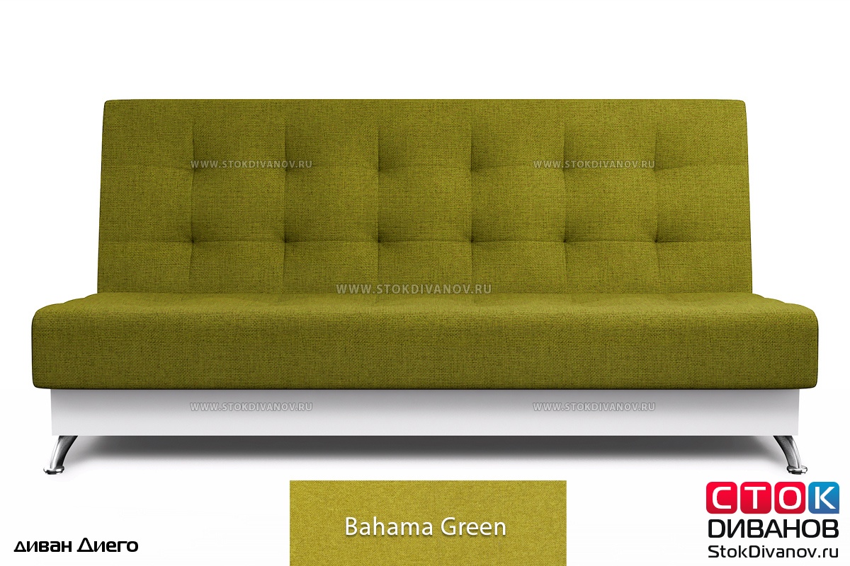 Диван Диегокомпактный диван без подлокотников. Раскладывается в кровать при помощи надежного механизма Книжка. Высокие ножки позволяют делать уборку под диваном. Ящик для белья под спальным местом - выполняется из ЛДСП. Утяжки по всей поверхности спального места. В основе дивана используется пружинный блок