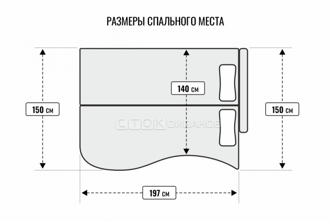 Габаритные размеры мягкой мебели, а так же размеры спальных мест могут отличаться +/- 5см.