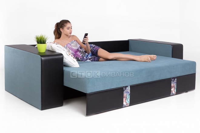 Сидение выдвигается вперед, открывая бельевой ящик, а спинка опускается на освободившееся...