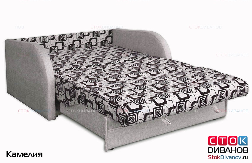 Диван Камелияклассический диван-кровать раскладной вперед. Надежный и простой механизм трансформации - аккордеон. Ящик для белья