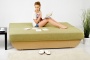 Сидение выдвигается вперед, открывая бельевой ящик, а спинка опускается на освободившееся...