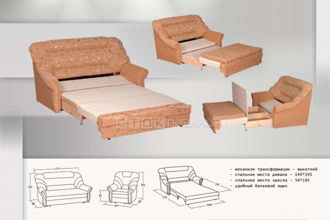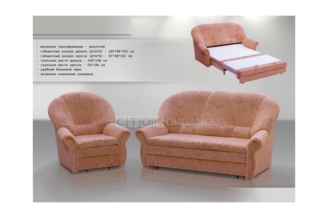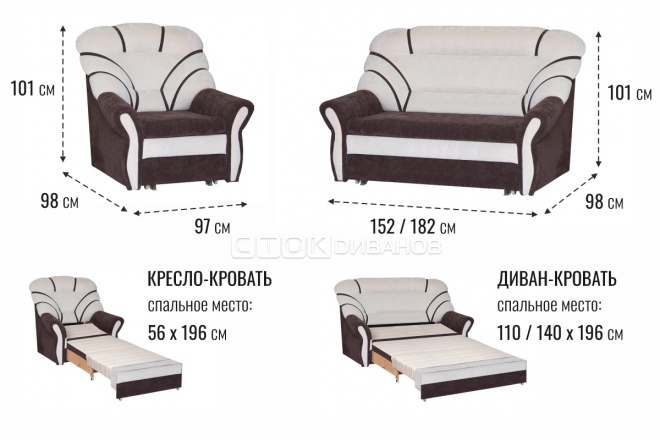 Размер кресла: 97 x 98 x 101 см (спальное место 56 х 196 см)