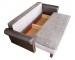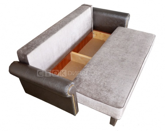 Сидение выдвигается вперед, открывая бельевой ящик, а спинка опускается на освободившееся... место. В связи с особенностью механизма подобный диван ставится на расстоянии 2-3 см. от стены. В разложенном виде такие диваны имеют достаточно большое и абсолютно ровное спальное место, высота которого соответствует кроватному.