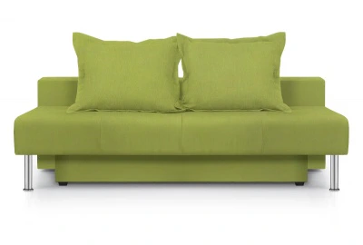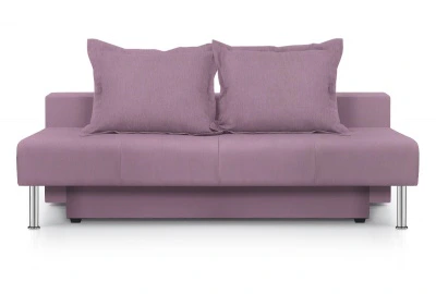 Мягкие подушки наполнены холлофайбером (синтепоновыми шариками). Диван укомплектован ящиком для белья (под сиденьем).