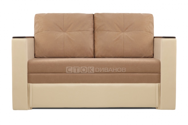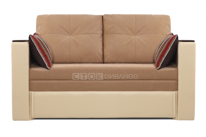на фото Диван Поло, ткань 4 группы - Прима Сангрия + иск.кожа Теос Милк