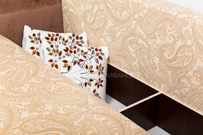 Сидение выдвигается вперед, открывая бельевой ящик, а спинка опускается на освободившееся...