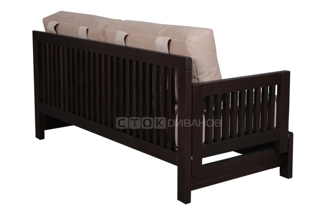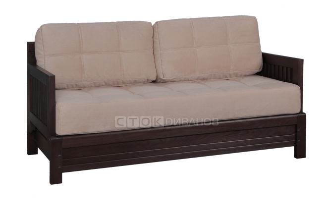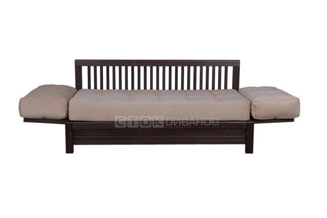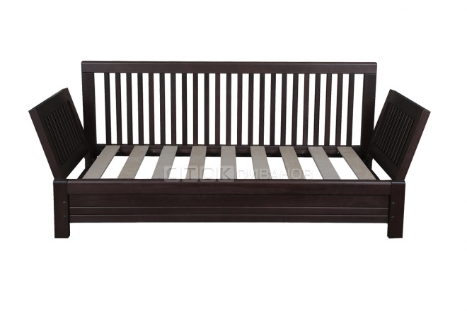 Диван Джулия – оригинальный диван-кушетка который можно использовать для сна. Деревянные подлокотники имеют несколько фиксированных положений. Чтобы разложить диван в кровать - подлокотники опускаются вниз, образуя спальное место с ортопедическим эффектом. Наполнение матраца - независимые пружины, которые обеспечивают правильную поддержку позвоночника во время сна. Каркас кушетки выполнен из натурального массива бука, окрашен в темный цвет. При изготовлении изделий из массива дерева возможна небольшая разница в текстуре и цвете древесины.