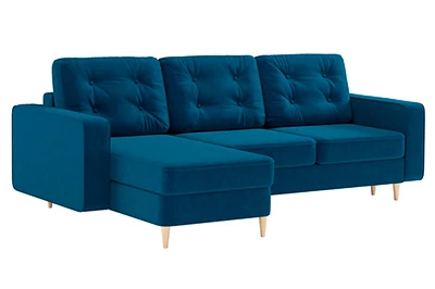 Угловой диван Форт – угловой диван-кровать в скандинавском стиле. Простой и надежный механизм Пантограф или шагающая Еврокнижка. Декоративный кант на подлокотниках и сиденье. Высокие ножки позволяют делать уборку при помощи робота-пылесоса. Высота пространства под диваном - 12см.