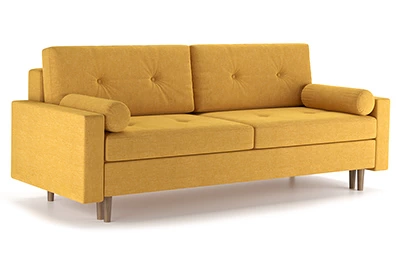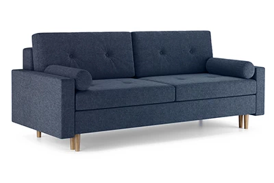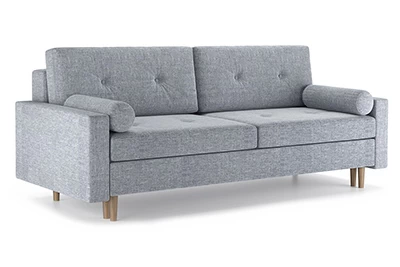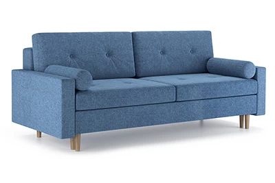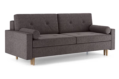 Диван Хельсинки – диван-кровать в скандинавском стиле. Простой и надежный механизм Еврокнижка. Мягкие подушки для спины с декоративными пуговицами. Высокие ножки позволяют делать уборку при помощи робота-пылесоса. Боковые подушки-валики входят в комплект.