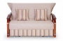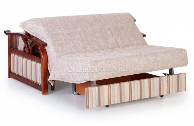 Диван Версальстильный диван с оригинальными подлокотниками, изготовленными из дерева, который при желании может превратиться в удобную кровать с ровным спальным местом, т.к. он снабжен механизмом трансформации "аккордеон". Наполнитель: ППУ. Диван имеет ортопедическое основание в виде лат. Имеется съёмный чехол на молнии, который при желании можно постирать. В комплектации вместительный ящик для белья.