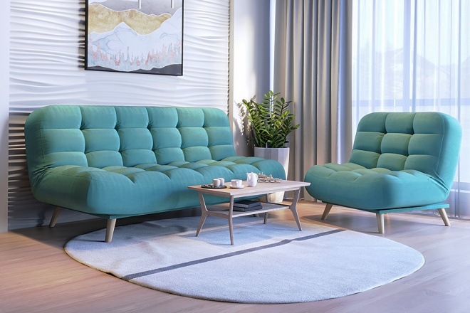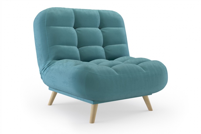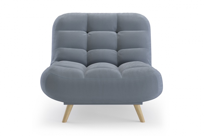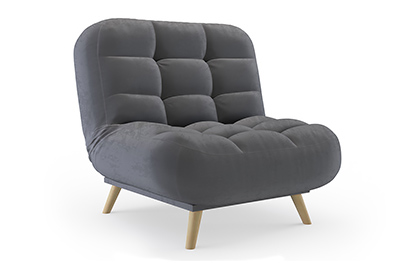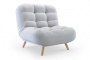 Кресло Рафаэль – кресло с механизмом клик-кляк в скандинавском стиле. Спинка может принимать положение полулёжа. Высокие ножки позволяют делать уборку при помощи робота-пылесоса. Утяжки на поверхности сиденья и спинки