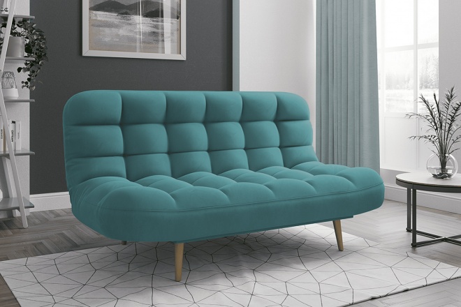 Диван Рафаэль – удобный диван-кровать со спальным местом на основе механизма Клик-кляк в современном стиле. Спинка может принимать положение «полулежа» . Ортопедическое основание - латы. Матрац на основе ППУ. Высокие ножки позволяют делать уборку при помощи робота-пылесоса