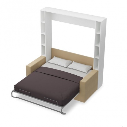 В сложенном виде это шкаф с диваном, в разложенном - кровать. Ширину дивана и шкафа можно выбрать при заказе. Обратите внимание - при ширине 132 см диван имеет одну приспинную подушку, спальное место 90 см по ширине. При ширине 182 и 202 см - диван имеет 2 подушки (как показано на фото).