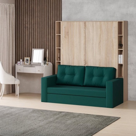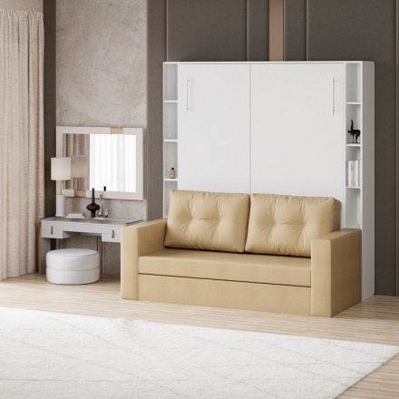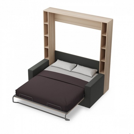 В сложенном виде это шкаф с диваном, в разложенном - кровать. Ширину дивана и шкафа можно выбрать при заказе. Обратите внимание - при ширине 132 см диван имеет одну приспинную подушку, спальное место 90 см по ширине. При ширине 182 и 202 см - диван имеет 2 подушки (как показано на фото).