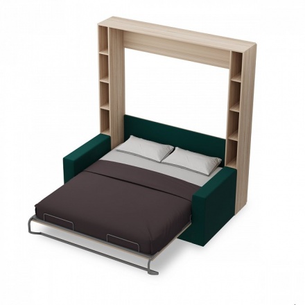 В сложенном виде это шкаф с диваном, в разложенном - кровать. Ширину дивана и шкафа можно выбрать при заказе. Обратите внимание - при ширине 132 см диван имеет одну приспинную подушку, спальное место 90 см по ширине. При ширине 182 и 202 см - диван имеет 2 подушки (как показано на фото).