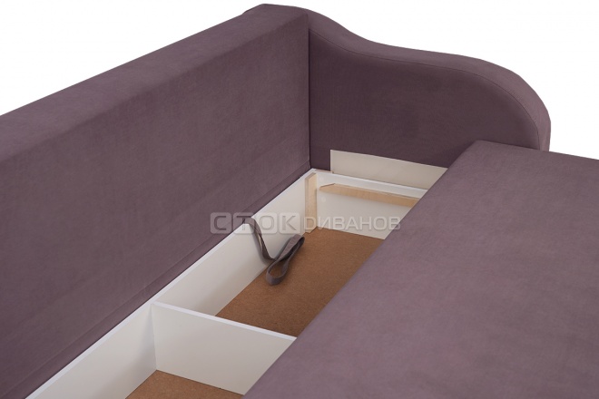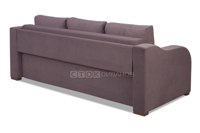 Сидение выдвигается вперед, открывая бельевой ящик, а спинка опускается на освободившееся... место. В связи с особенностью механизма подобный диван ставится на расстоянии 2-3 см. от стены. В разложенном виде такие диваны имеют достаточно большое и абсолютно ровное спальное место, высота которого соответствует кроватному.