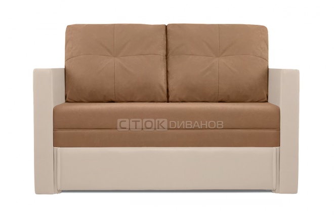 Наполнение дивана - ППУ высокой плотности. Ящик для белья находится под сидушкой. Максимальная нагрузка на спальное место - 120 кг. Для повышенной нагрузки на...