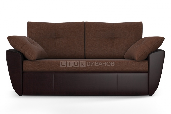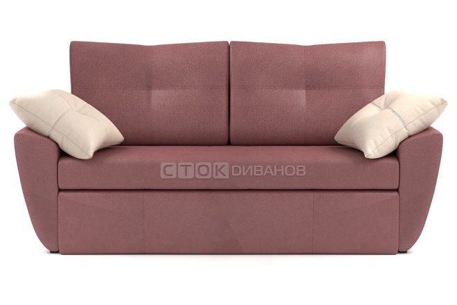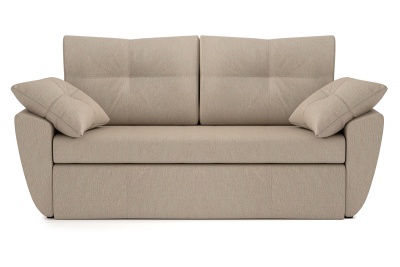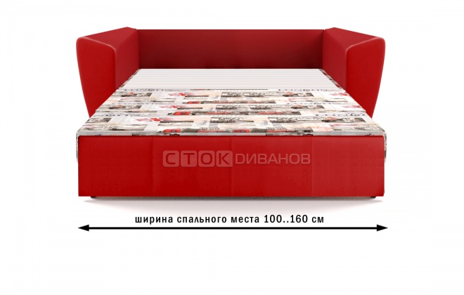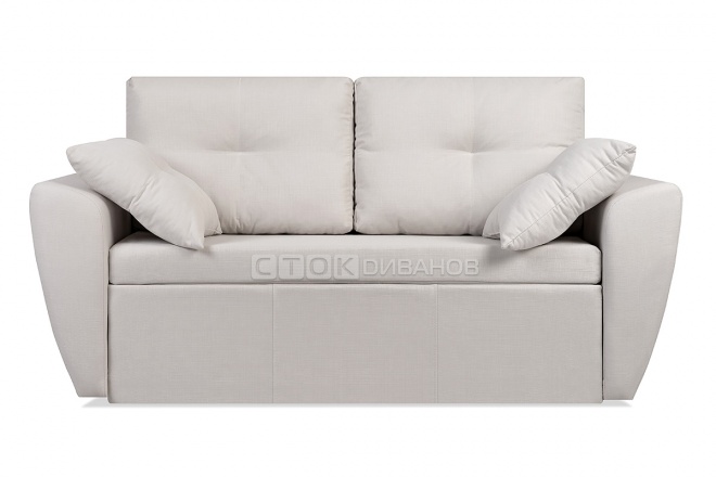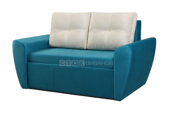 Малогабаритный, удобные подлокотники, а главное (брали для сна), раскладывается движением вперёд.