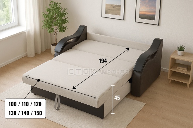 Габаритные размеры мягкой мебели, а так же размеры спальных мест могут отличаться +/- 5см.