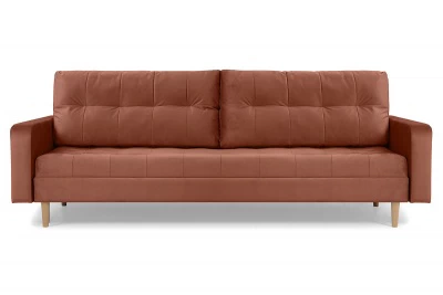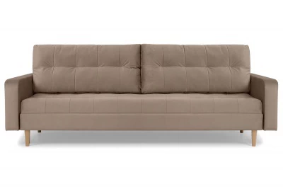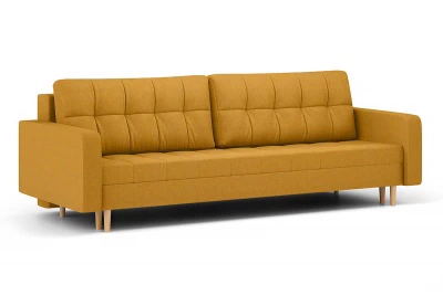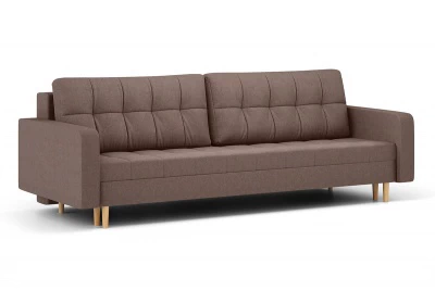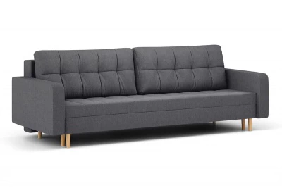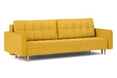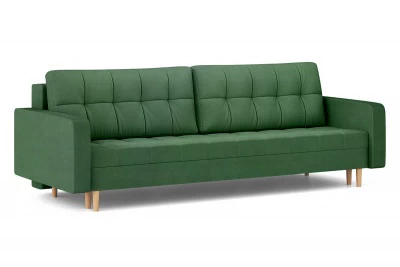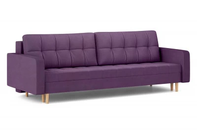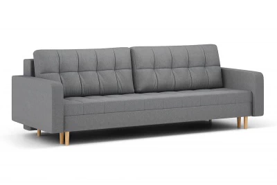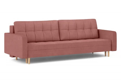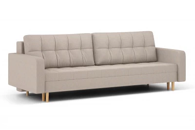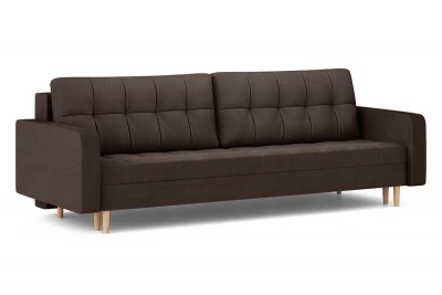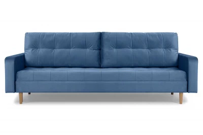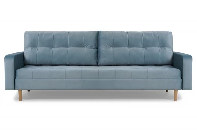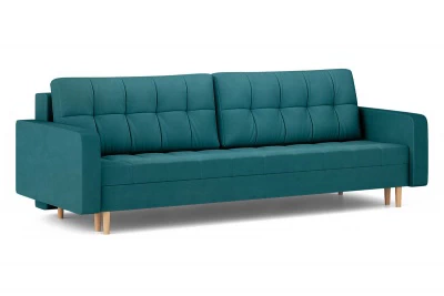Диван Бали – диван-кровать в Скандинавском стиле на высоких ножках. Простой и надежный механизм Еврокнижка. Утяжки на поверхности сиденья предотвращают образованию складок. Высокие ножки позволяют делать уборку при помощи робота-пылесоса. Высота ножек - 15 см. В диване есть ящик для хранения принадлежностей. Сзади диван полностью оббит тканью.
