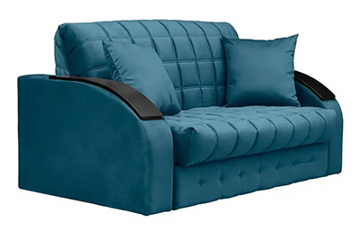 Диван Брауникомпактный диван-кровать, раскладной вперед с механизмом аккордеон на металлокаркасе. Надежный механизм, легко раскладывается, не царапает пол. Ортопедическое основание на латах, ППУ матрац, ящик для белья. Декоративные накладки на подлокотниках, материал - МДФ, цвет темный.