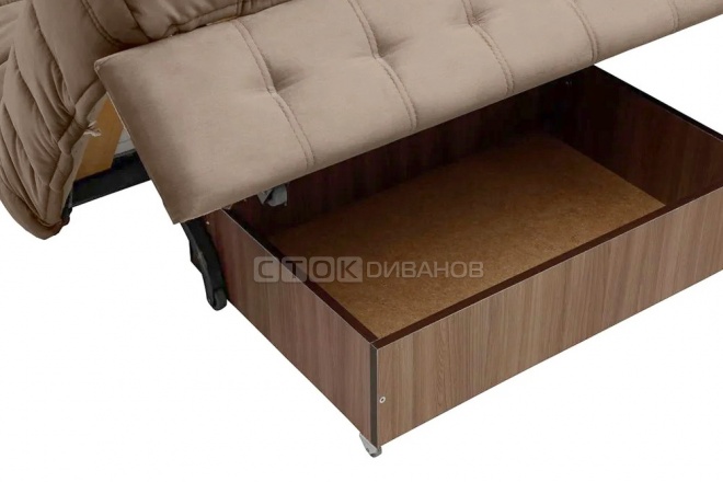 Диван Брауникомпактный диван-кровать, раскладной вперед с механизмом аккордеон на металлокаркасе. Надежный механизм, легко раскладывается, не царапает пол. Ортопедическое основание на латах, ППУ матрац, ящик для белья. Декоративные накладки на подлокотниках, материал - МДФ, цвет темный.