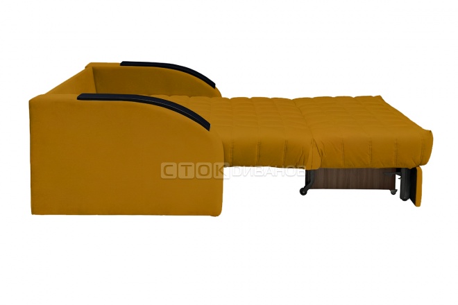 Диван Брауникомпактный диван-кровать, раскладной вперед с механизмом аккордеон на металлокаркасе. Надежный механизм, легко раскладывается, не царапает пол. Ортопедическое основание на латах, ППУ матрац, ящик для белья. Декоративные накладки на подлокотниках, материал - МДФ, цвет темный.