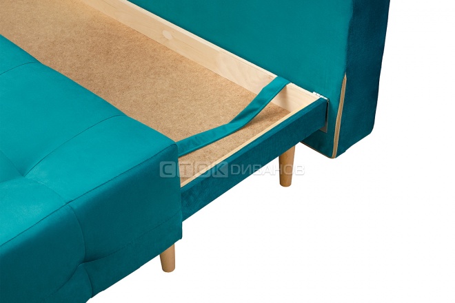 Сидение выдвигается вперед, открывая бельевой ящик, а спинка опускается на освободившееся... место. В связи с особенностью механизма подобный диван ставится на расстоянии 2-3 см. от стены. В разложенном виде такие диваны имеют достаточно большое и абсолютно ровное спальное место, высота которого соответствует кроватному.