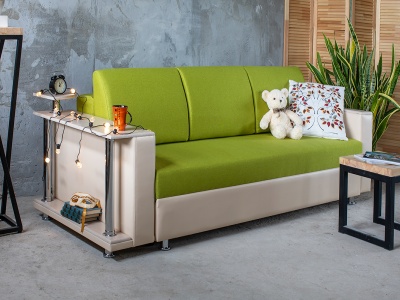 Диван Малибу-2удобный диван-кровать со встроенным столиком в один из подлокотников. Простой и надежный механизм Еврокнижка. Ящик для белья
