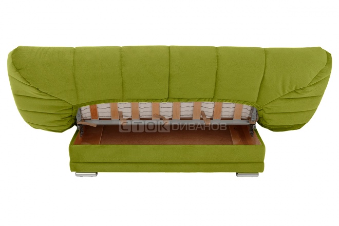 Для хранения постельных принадлежностей под диваном есть небольшой ящик для белья. Размеры ящика: 130 x 80 x 19 см.