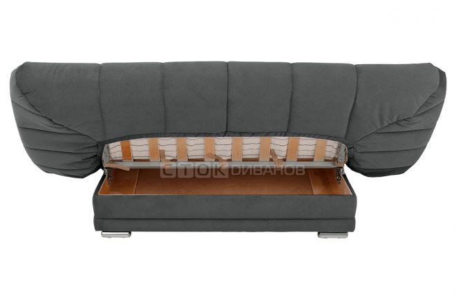 Для хранения постельных принадлежностей под диваном есть небольшой ящик для белья. Размеры ящика: 130 x 80 x 19 см.