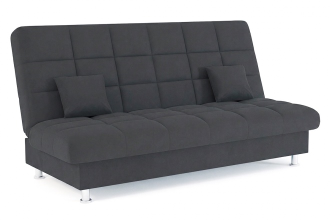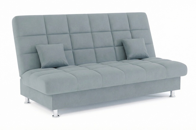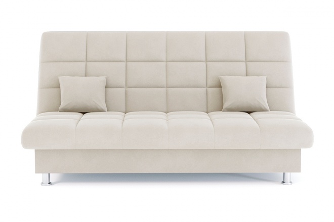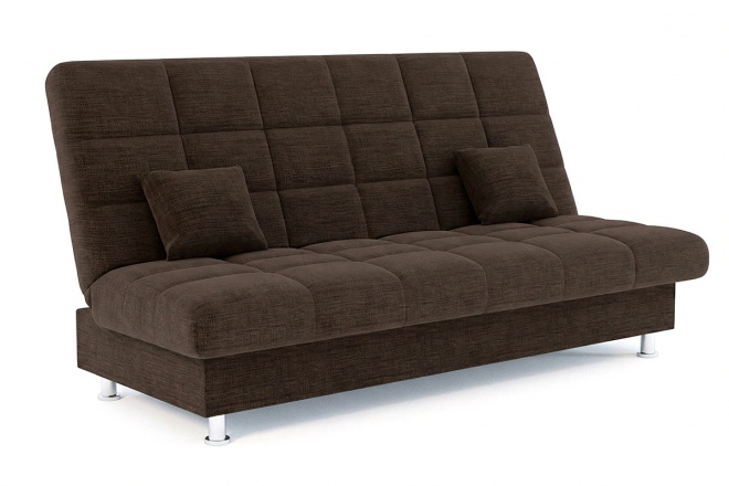 Диван Модернкомпактный диван без подлокотников. Раскладывается в кровать при помощи надежного механизма Книжка (клик-кляк). В основе дивана используется металлокаркас с ортопедическим основанием на латах. Ящик для белья под спальным местом. Утяжки по всей поверхности спального места. Наполнение спального места - ППУ (пенополиуретан) средней жесткости. Небольшие металлические ножки обеспечивают доступ к пространству под диваном во время уборки.