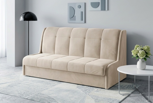 Диван Некст – Компактный диван с очень узкими и низкими подлокотниками, которые придают дивану стиль минимализма. Комфортное спальное место с ортопедическим матрацем на ППУ и деревянных латах. Надежный механизм трансформации аккордеон на металлокаркасе. Стёганый чехол на спальном месте, который можно снимать для ухода за тканью. Ящика для белья нет в базовой комплектации, но его можно установить как дополнительную опцию.
