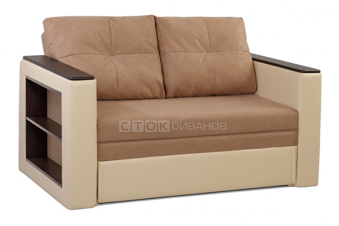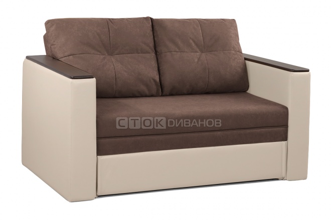 на фото Диван Поло, ткань 4 группы - Прима Сангрия + иск.кожа Теос Милк