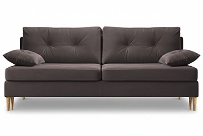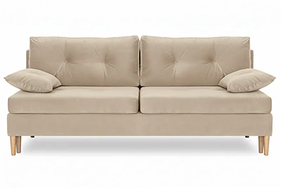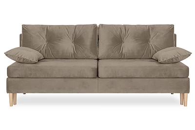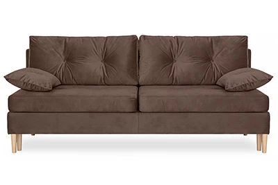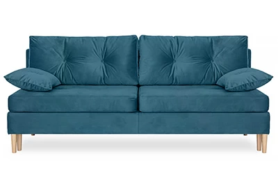 Диван Порто – компактный диван-кровать в скандинавском стиле. Простой и надежный механизм Еврокнижка. Наполнение спального места - ППУ средней жесткости + пружины «змейка». Под сиденьем есть небольшой ящик для белья.