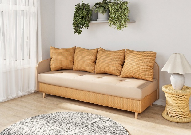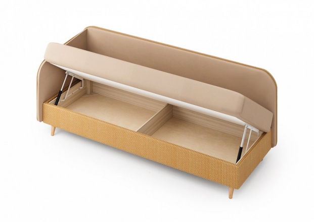 Некоторые модели имеют сдвижную конструкцию - основание дивана сдвигается в бок, подлокотник опускается в горизонтальное положение образуя спальное место. Идеально подходит для детской, кухни, прихожей.